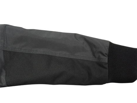 Fabric:1,nylon twill with PU coating; W/P:3000mm; MVP:3000g/m2/24hr ; 2,polyester cordura with PU coating; W/P:3000mm; MVP:3000g/m2/24hr; Lining: 210T polyester; Padding:200G on body,140G on sleeve ; Remark: all seams with heat tape |