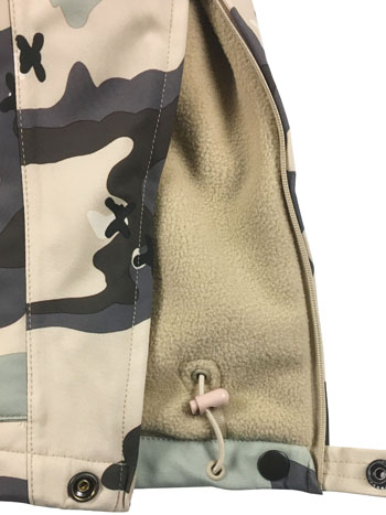 Fabric: Softshell 95%ployester 5%spandex + TPU membrane +100% ployester tricot;